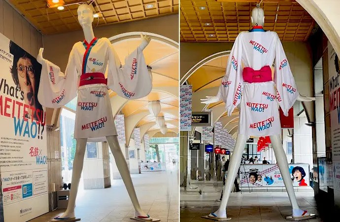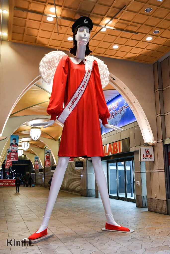 往名古屋車站東南邊的一個角落前近,此處為老字號百貨「名鐵百貨」的所在地,而百貨知名的代表象徵為這座高達 610 公分的「ナナちゃん人形」,她的生日是 1973 年 4 月 28 日,用來紀念當時百貨的「セブン館」開業而打造,Seven 的讀音則成為娜娜醬的名稱由來。