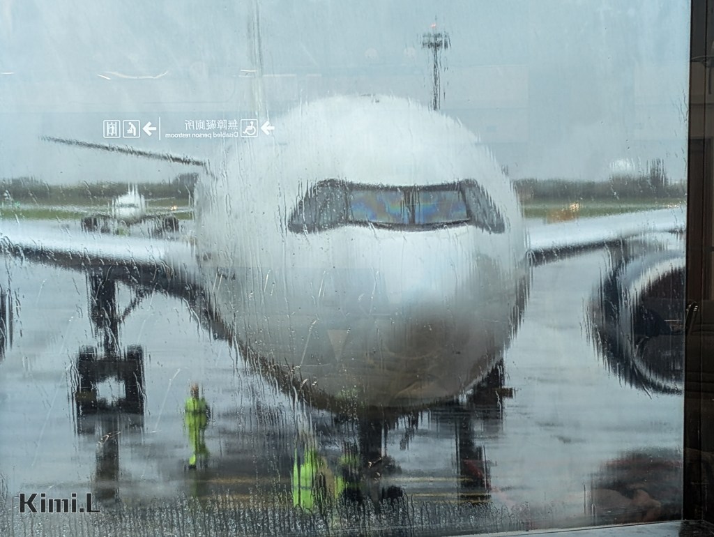 出發當日的天空不作美,桃園機場上空下著雨,雖然雨勢並未耽誤整個起飛流程,但開局就遇到下雨,難免會讓人心中有點憂愁。