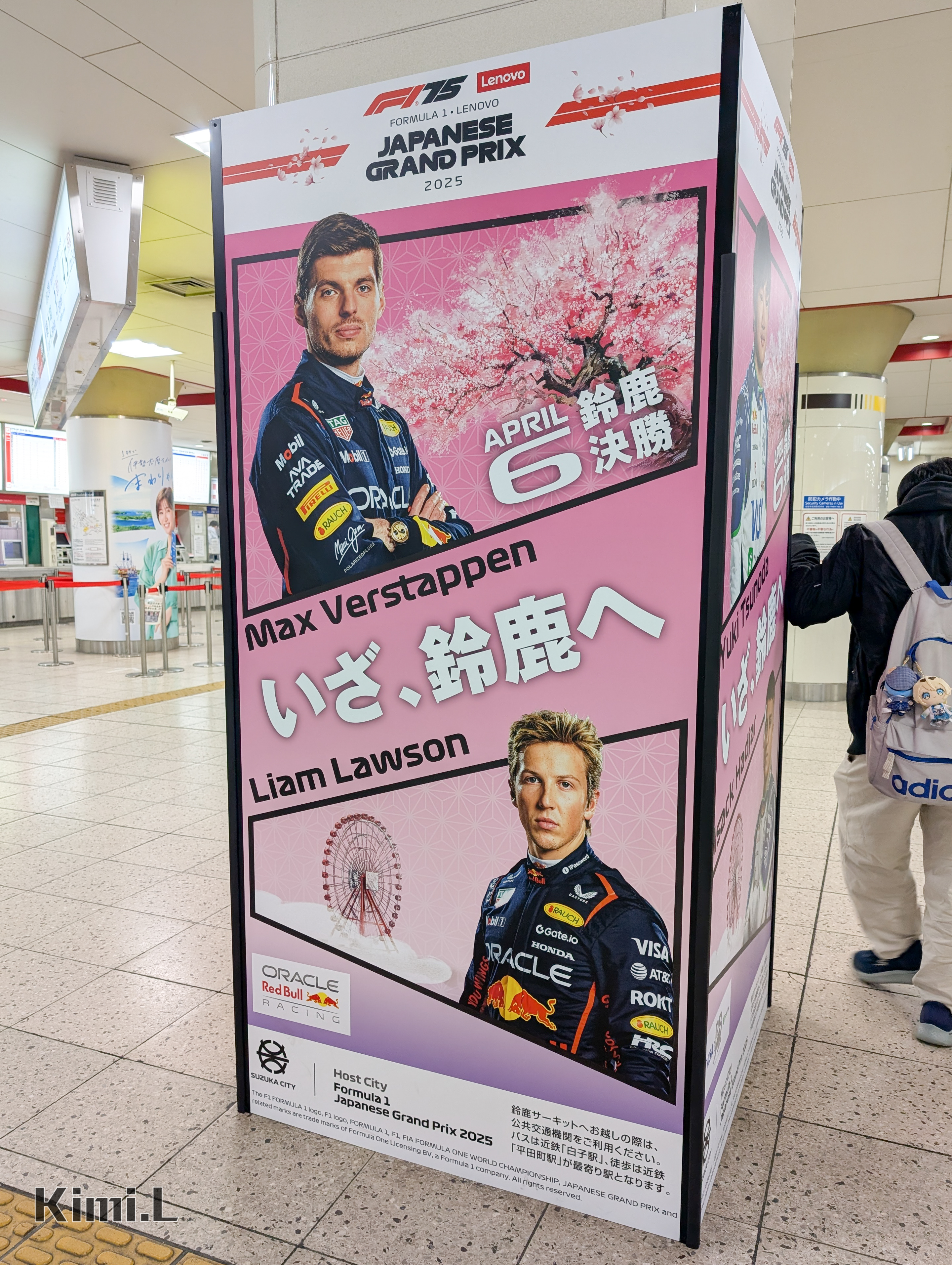 由於本次旅程是來看 F1 日本站,趁著機會在車站一樓大廳以及近鐵乘車月台內,也看到了一些相關的宣傳廣告。