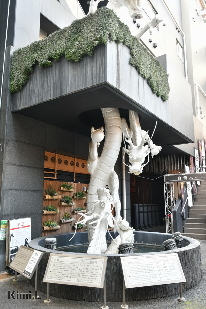 萬松寺主祀為不動明王以及白雪稻荷,前者能祈求消除災害、保障安全與健康…等,後者則是能祈求生意興隆與豐收,寺內除提供祈福、追悼等多項服務外,也能在此購買御朱印、御守。雖然寺廟隱藏在商店街內,外觀又與現代建築融合,但位於寺廟門口右側,有一尊身長達 8 公尺的白龍,每天有六個時段上演噴水並結合白煙的水舞秀,有興趣的朋友不妨在指定的時段內前來參觀。