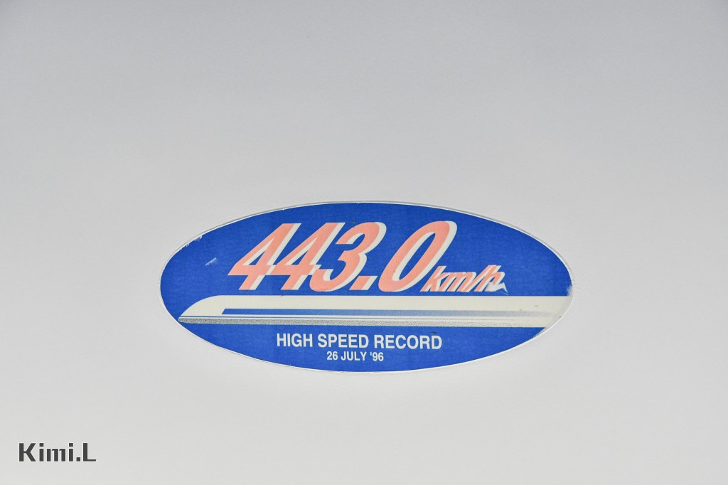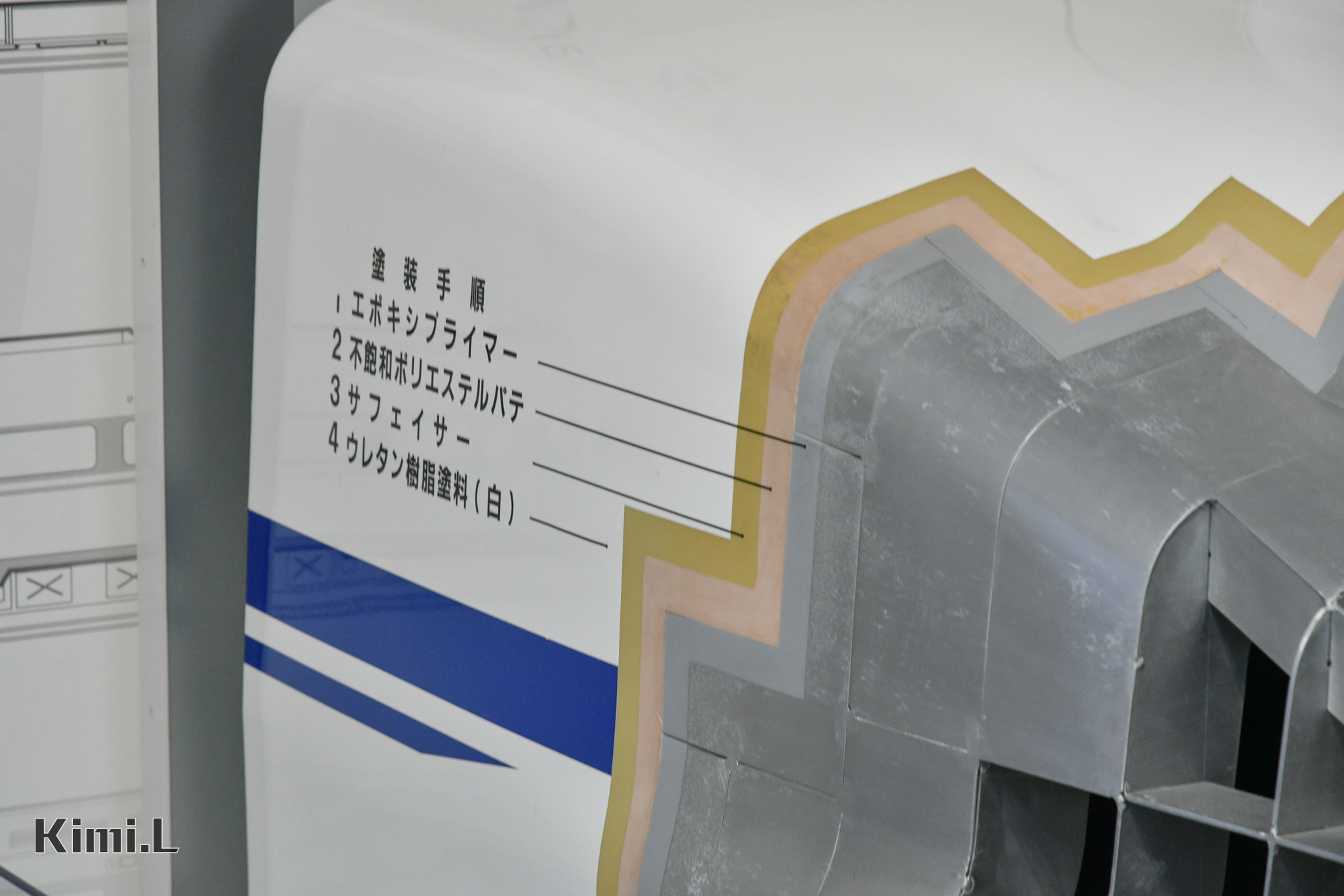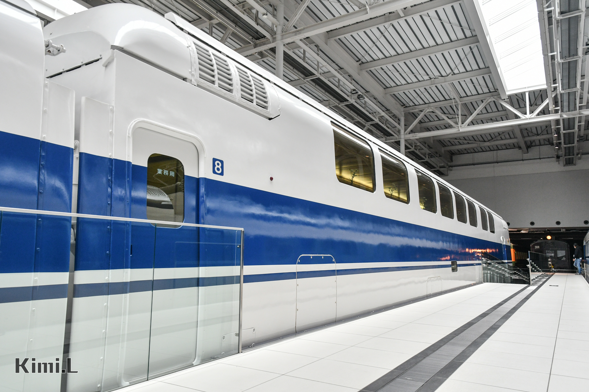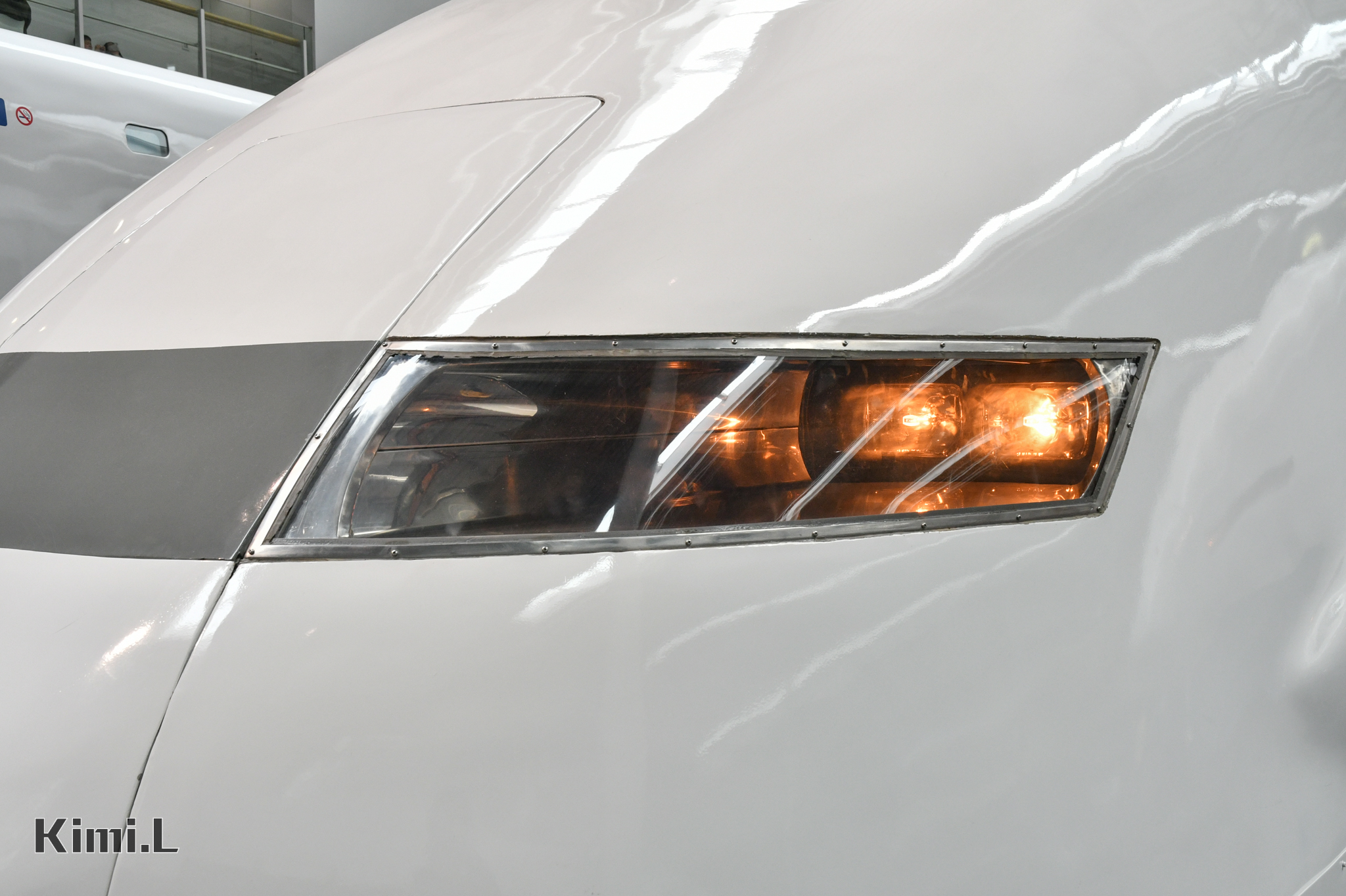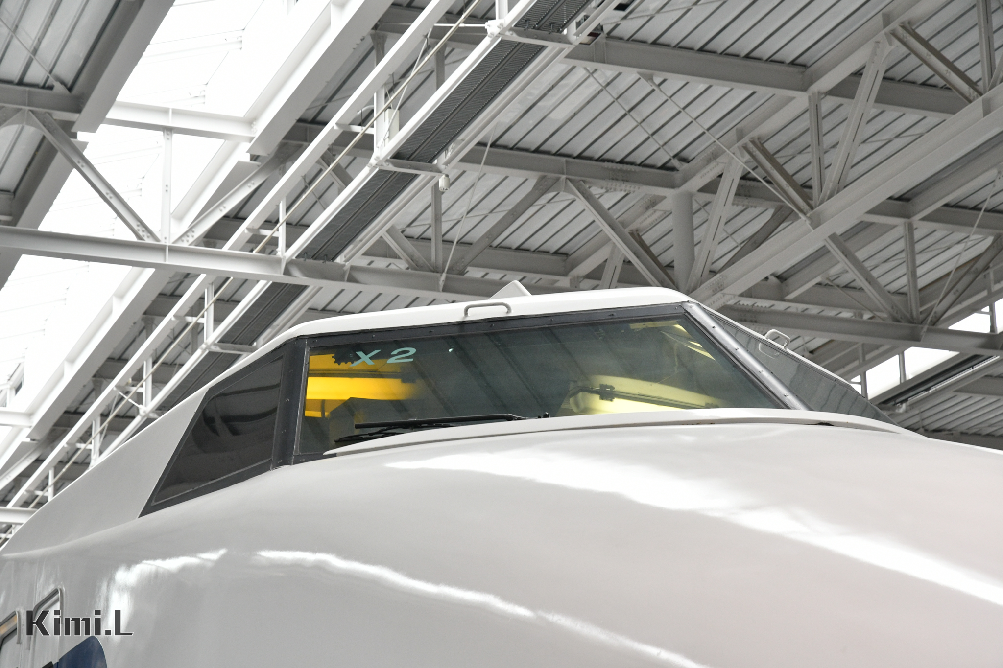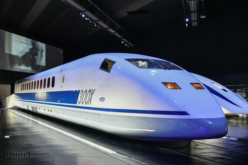 一旁與黑色展間形成強烈對比的,是 955 形新幹線試驗電車,車身外觀主要以藍、白、灰三個顏色相互搭配,它的開發背景是在 1990 年,當 JR 東海完成了 300 系新幹線原型車時,955 的生產計劃便同步進行中, 為了方便媒體或民眾稱呼,JR 東海賦予它「300X」這個名稱。