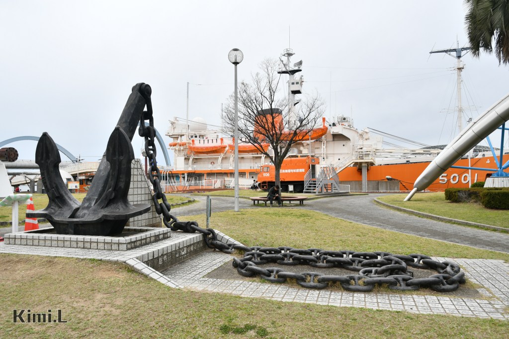 在正式登船前,富士號前的廣場上也有幾項設施可以參觀,被視為船艦最具精神指標的主錨,重量約 4.1 噸,並且以鑄鋼打造而成,如今卸下它當時負責停泊的重責大任,靜靜地矗立在此。