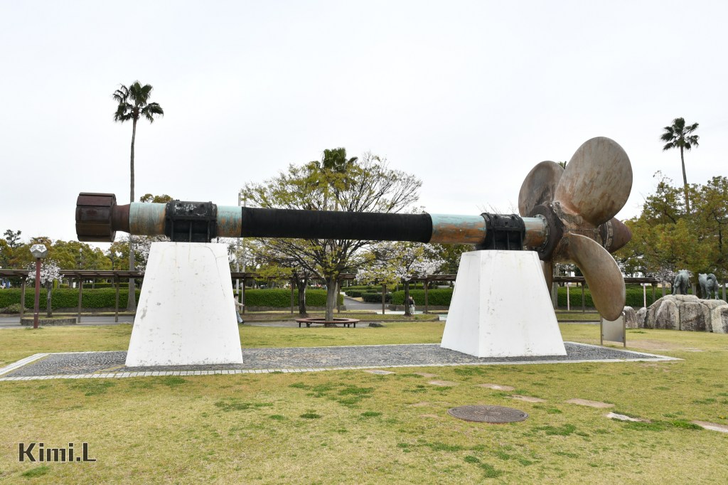 位於一旁的螺旋槳與主軸,則是當年將富士號推往南極大陸的重要功臣之一,螺旋槳直徑為 490 公分,重達 21.7 噸,主軸長度為 11.5 公尺,重達 25.8 噸,據說除了作為驅動船隻前進後退的功能,還兼具破冰的效果。
