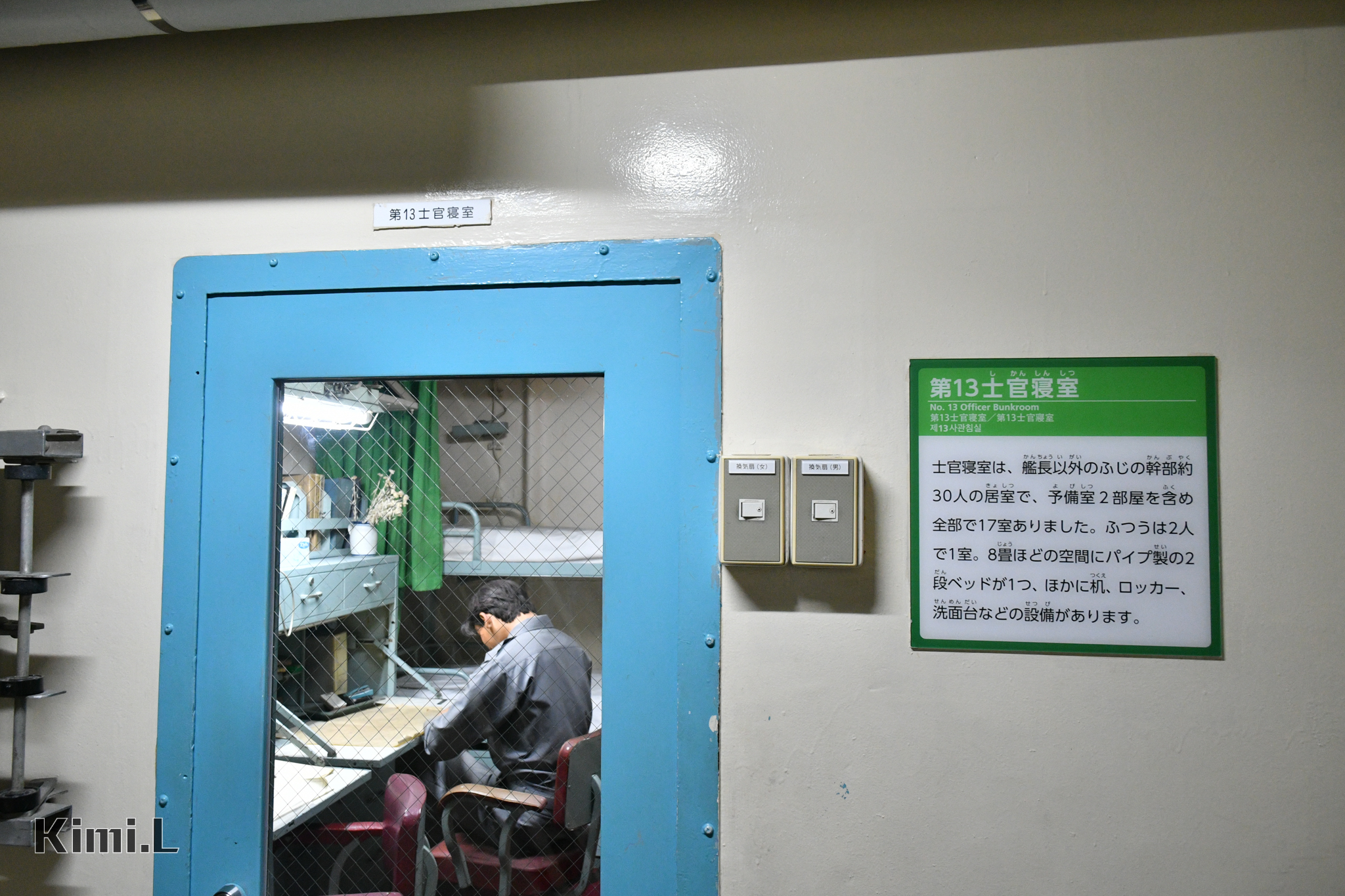 富士號的船員組成為海上自衛隊隊員,除了艦長之外,自衛隊的幹部人數約在 30 人左右,士官們被分配為 2 人 1 室,房間內設有一張上下舖、兩張桌椅、置物櫃以及洗臉盆,士官們甚至還有自己專屬的浴室!
