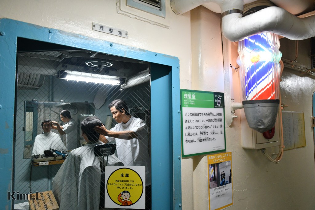 為了不要讓船員們在出航時蓬頭垢面,船上貼心的設立了理髮廳,這位理髮師是出港前「特別培訓」,手藝相當精湛,不過全船只有這一位理髮師,因此全面採預約制,只提供理髮的服務,不受理刮鬍子和洗頭…等其他項目。