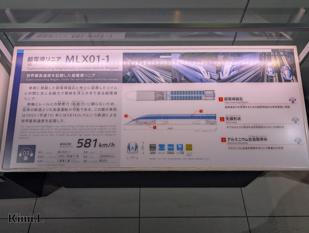 磁浮鐵道館不只是一處展示列車的博物館,名稱中的「磁浮」這兩個字可不是隨便放放,它代表日本高速鐵路的未來,也就是 SCMaglev(超導磁浮) 技術,這項技術是由 JR 東海與 JR 鐵道綜合技術研究所共同開發,目前已投入於中央新幹線的建置上,預計在 2034 年開通東京到大阪的路線,車程將從目前的 2 小時 30 分鐘,大幅縮短至 1 小時 7 分鐘。