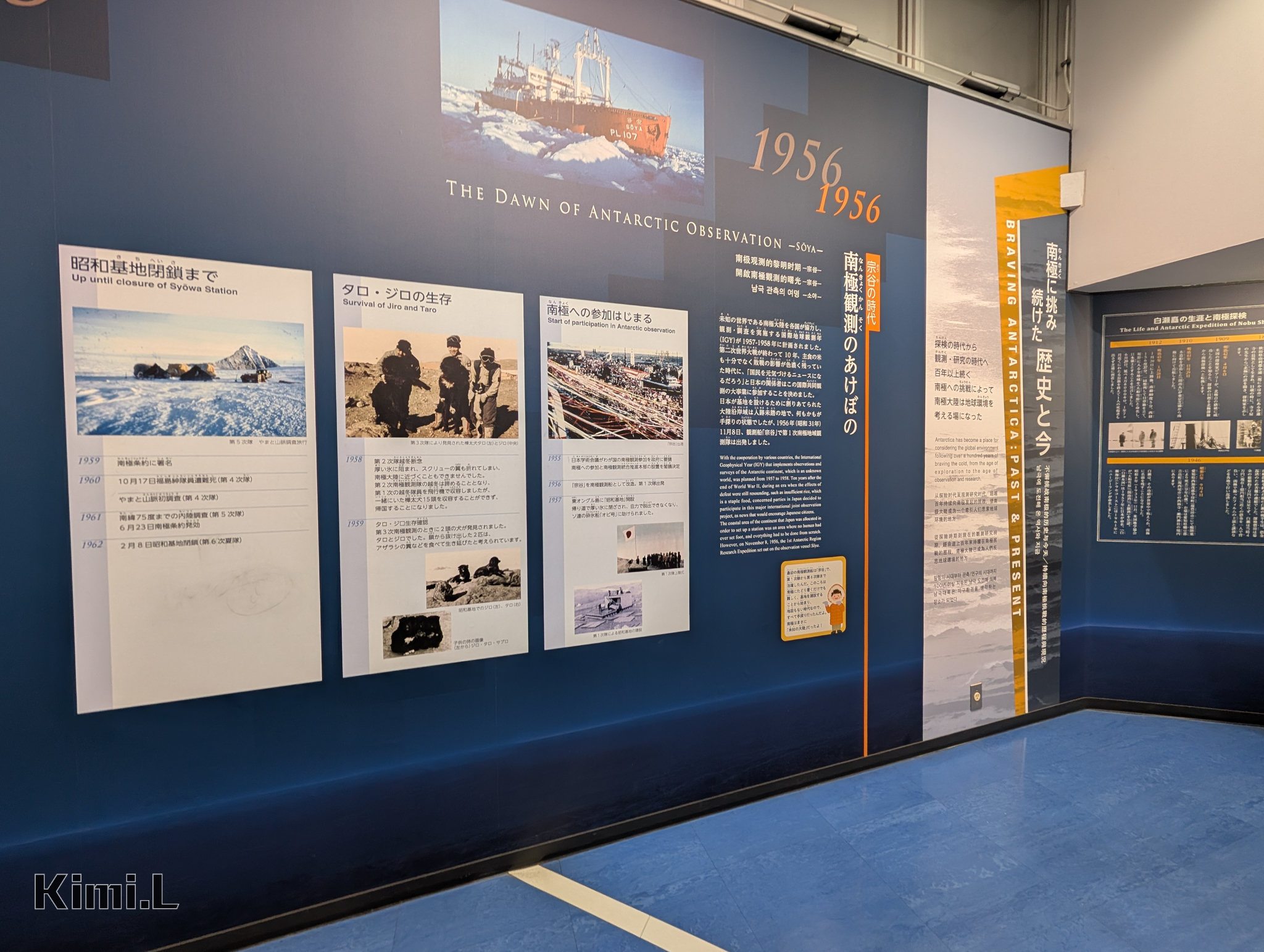 在廣場上最具有代表性的,非太郎與次郎雕像莫屬,牠們是 1956 年日本第一批隨著宗谷號探測船,前往南極大陸的樺太犬,兩隻狗為兄弟,牠們安然的度過第一次的任務,其中次郎更和另一隻雌犬白子,在南極大陸生下八隻幼犬。
