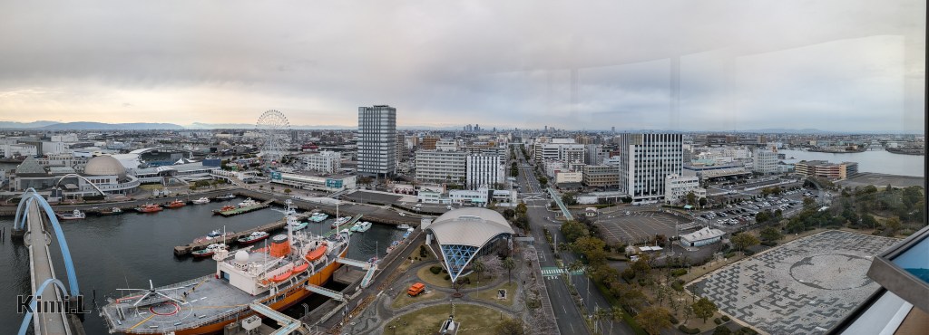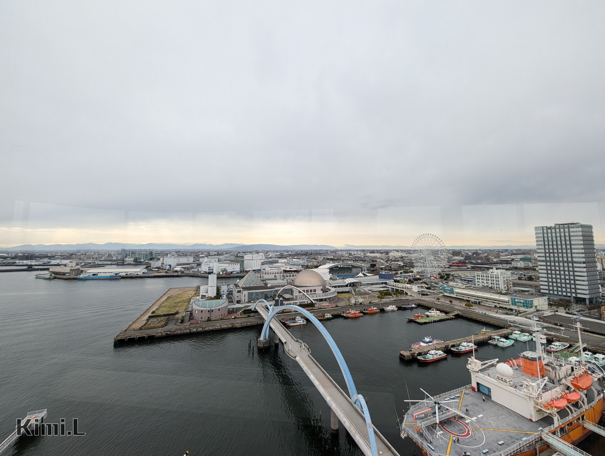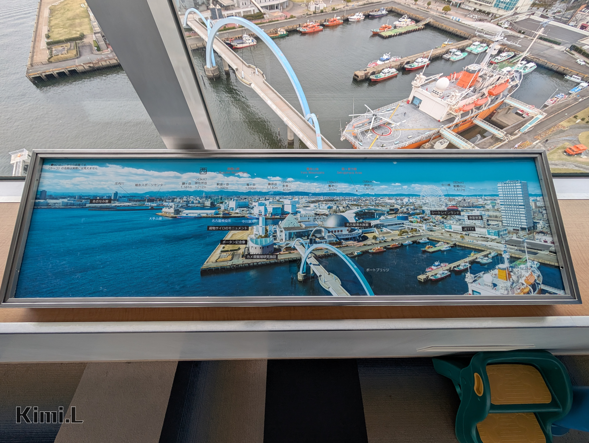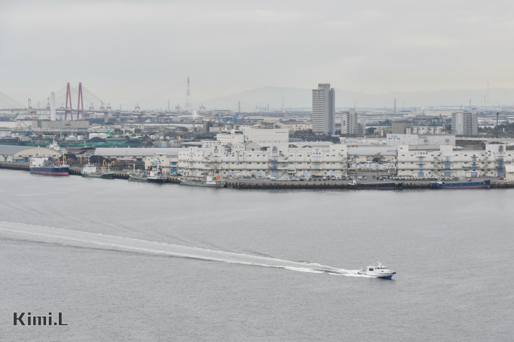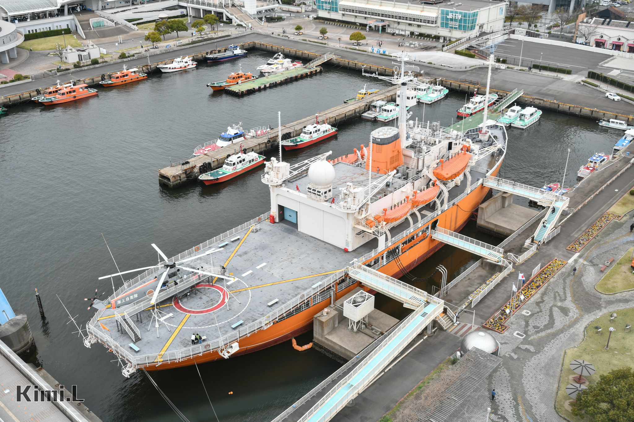 展望台的視野非常棒,天氣晴朗的時候甚至能看見遠在三重縣的御在所岳,從這個角度還能看見另一項知名設施「名古屋港水族館」,而前面所參觀過的南極觀測船富士號,看起來變得有些小,但是在一旁的船隻對比下,仍可見其規模之龐大。