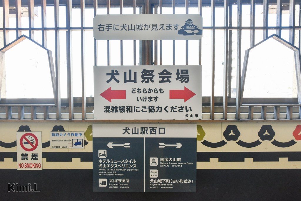 排除萬難,總算是抵達了名鐵犬山站,一出車站就看見了犬山祭的指示牌,可惜和 F1 週末的賽程重疊而沒辦法參加。