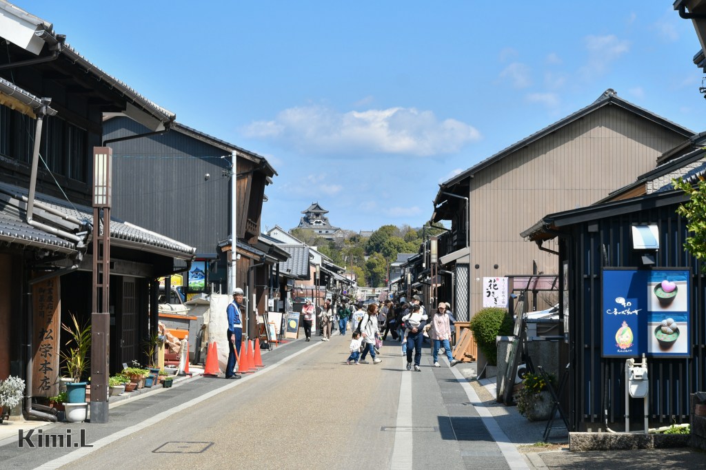 沿著城下町的深處走去,前來造訪的旅客開始多了起來,遠遠便能看見犬山城著名的現存天守閣。
