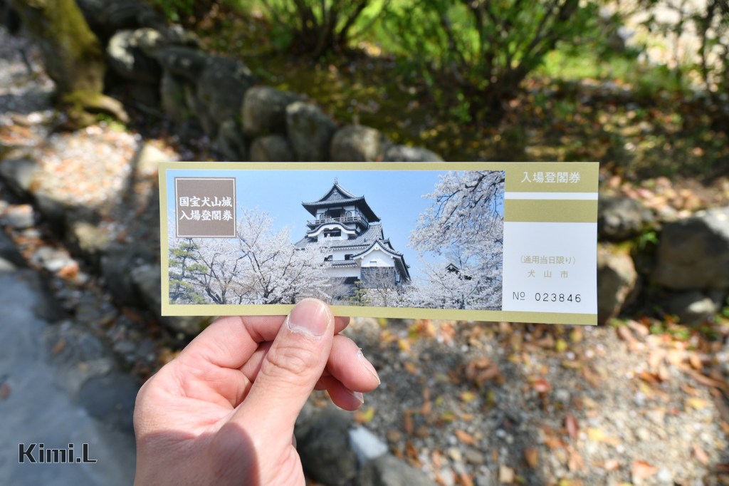 穿過神社群,踏上一小段石階,別忘了用手上的套票兌換犬山城的登閣券,上面的照片剛好就是以櫻花作為前景的犬山城。