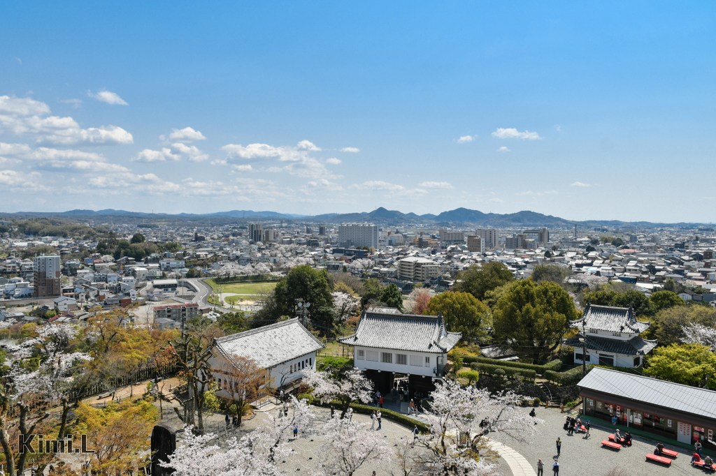 穿越陰暗的天守閣內部來到最上層,雖然最高處僅約海拔 85 公尺,但周邊的房屋樓層並不高,向南邊望去能一覽犬山市的寧靜風光。