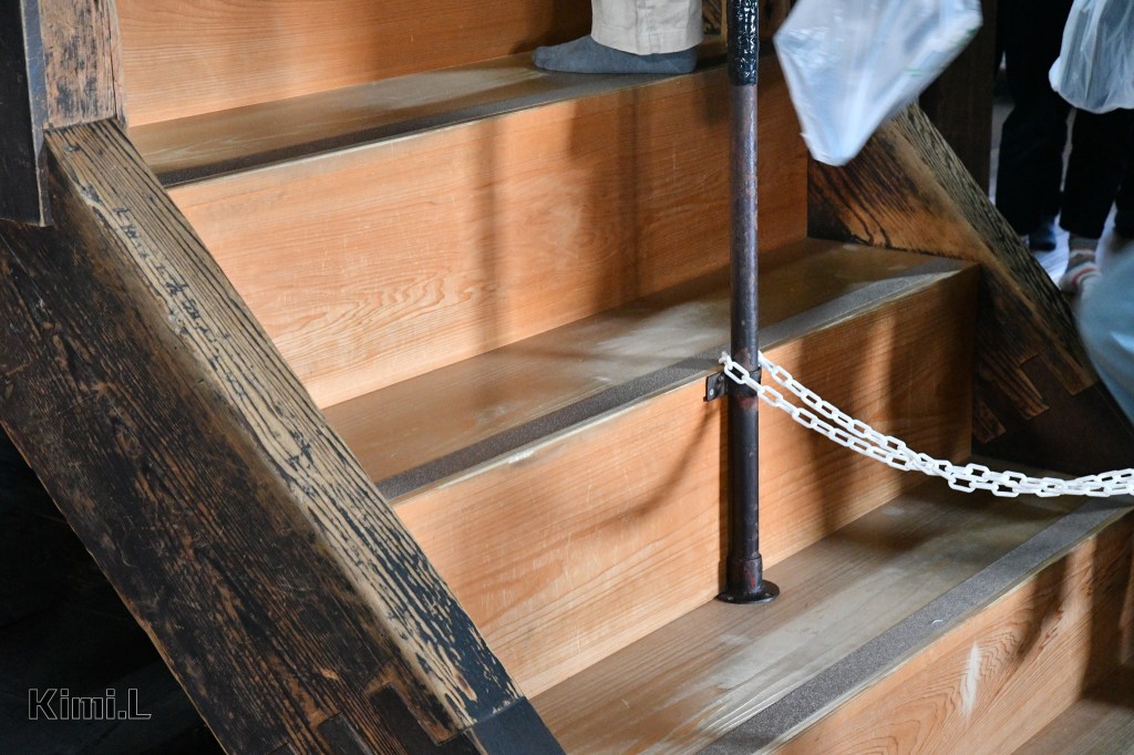 天守閣通常被視為一座城堡的精神象徵,同時也代表著古代城主的權力,為了不讓敵人輕易攻陷,登上天守閣的階梯不僅狹窄,趨近於垂直的角度連行走都有相當困難,只不過換到了現在,就當作體驗攻略美景前的一道小關卡,同時也務必注意自身安全。