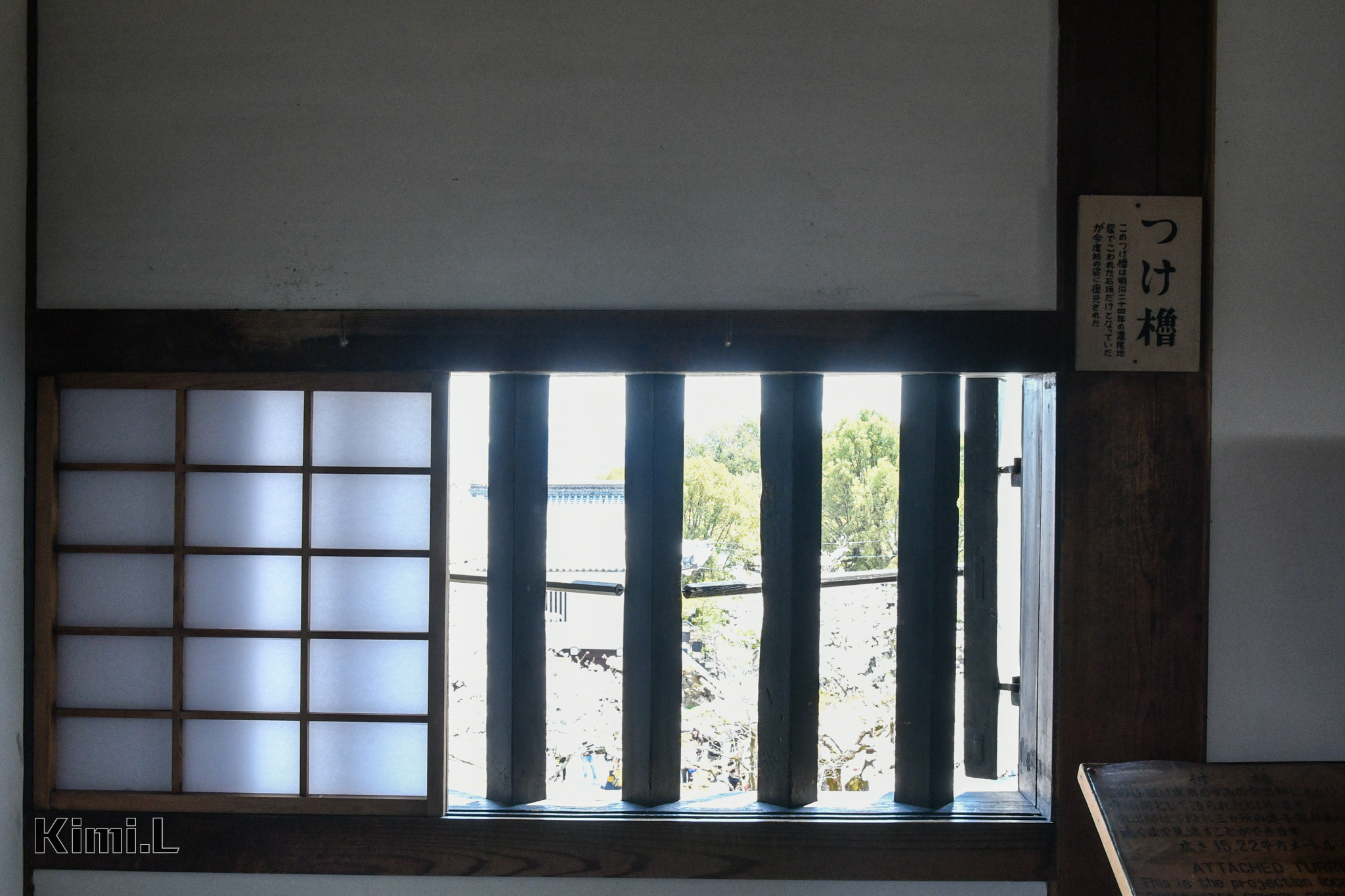 最頂層的望樓,包含了高欄之間以及外側的走廊與欄杆,而犬山城天守閣為國寶五城內,唯一能踏出外廊欣賞風景,雖然欄杆高度不及成年人的腰部,但上面的風景實在優美,即使有懼高症也要硬著頭皮走一回。