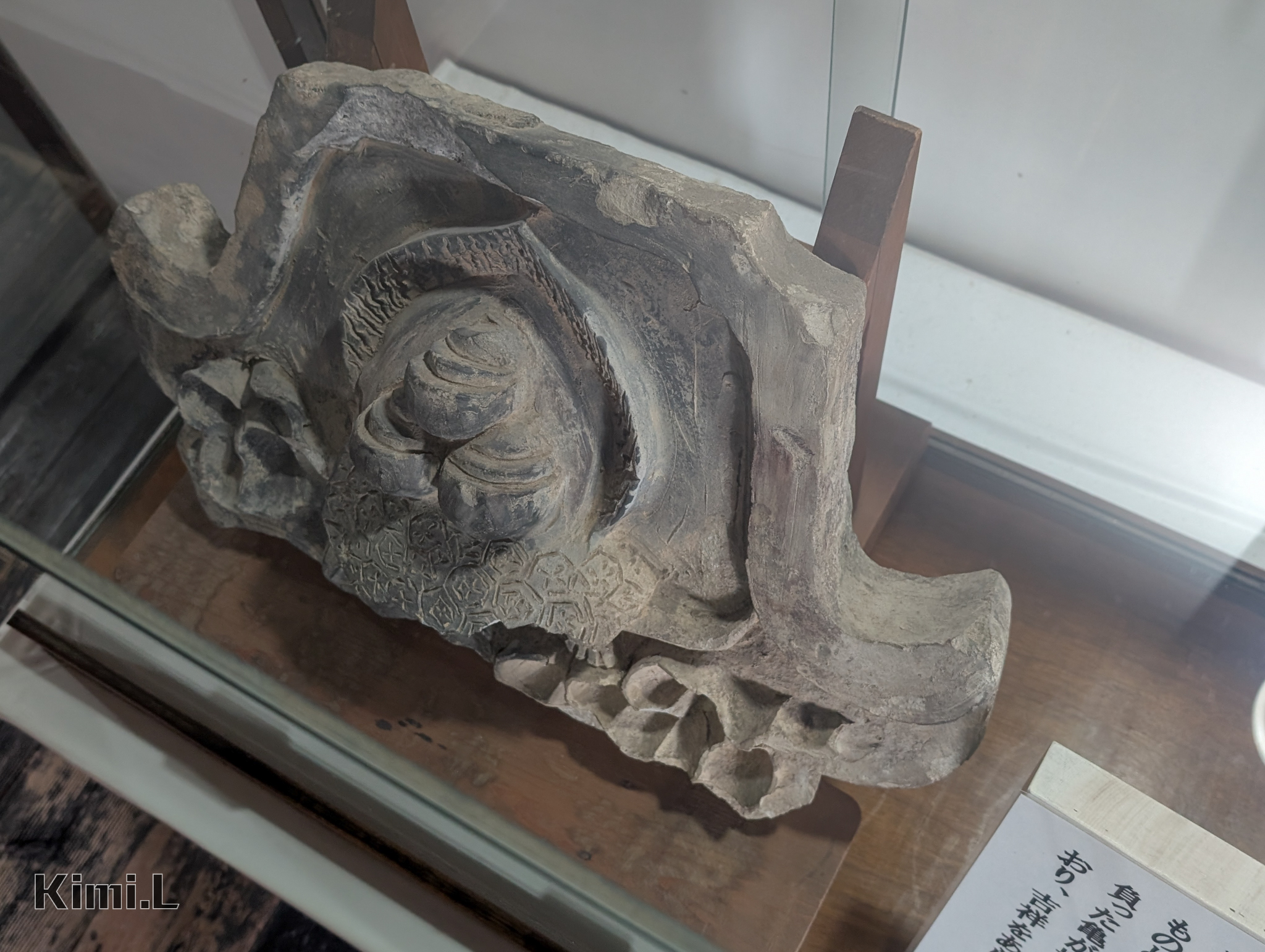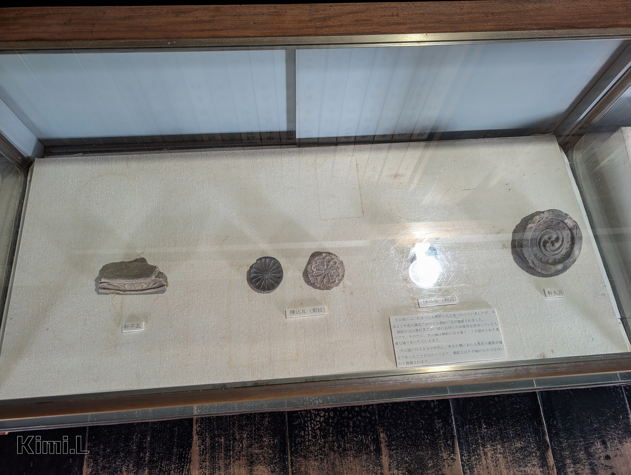 四周的武士走道陳列著多種文物,像是各式各樣看起來威風凜凜的鎧甲,一些帶有破損痕跡的軒丸瓦、軒平瓦、棟込瓦,則是當時被裝飾犬山城屋頂上,以及前面有介紹過的鬼瓦或是鯱,經過數百年時光的洗禮下,仍被保存了下來。
