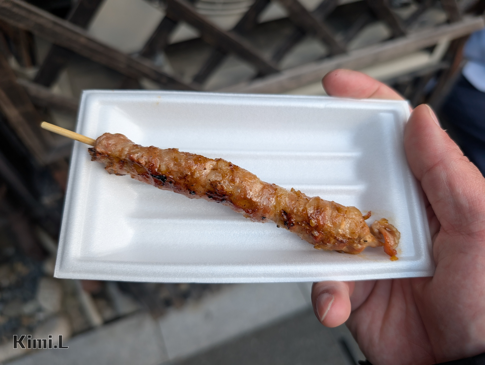 雖然城下町的店舖種類多元又豐富,但我一向對食物沒特別要求,就在路邊簡單買了個烤團子和豬肉串,也算是有體驗到城下町熱鬧的氛圍吧。