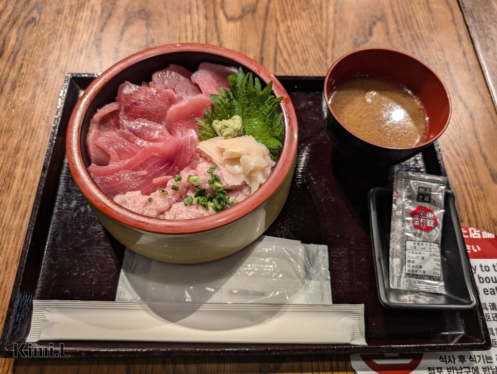 傍晚時分的戶外略帶寒意,下午在犬山城下町攝取的熱量已消耗殆盡,最後就來一碗魚錠的鮪魚雙色丼當作結尾吧!