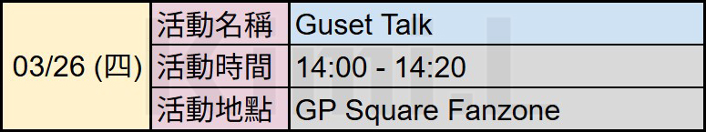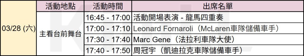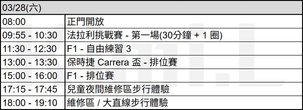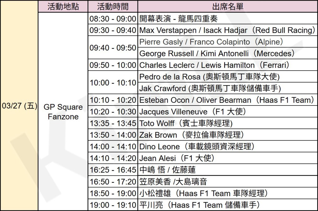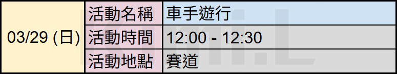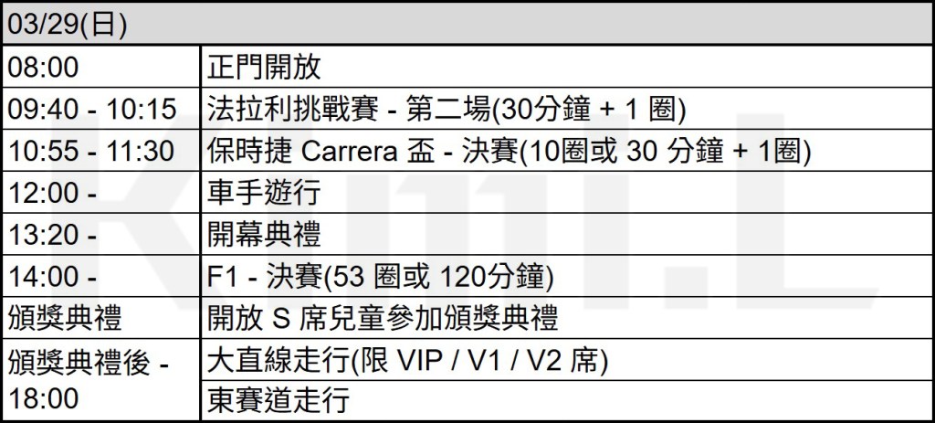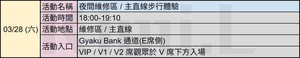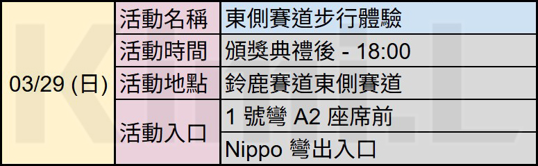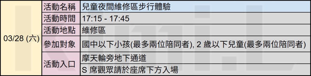 這是一個兒童專屬的福利時間!在這個時段內會開放購買 S 席的觀眾入場,讓家長們可以帶著小孩在 Pit 區欣賞,由於人數受到大幅控制,安全性較週四的 Pit 區步行體驗高,而且更容易在這個時段內看到車手,相當有機會拿到簽名!