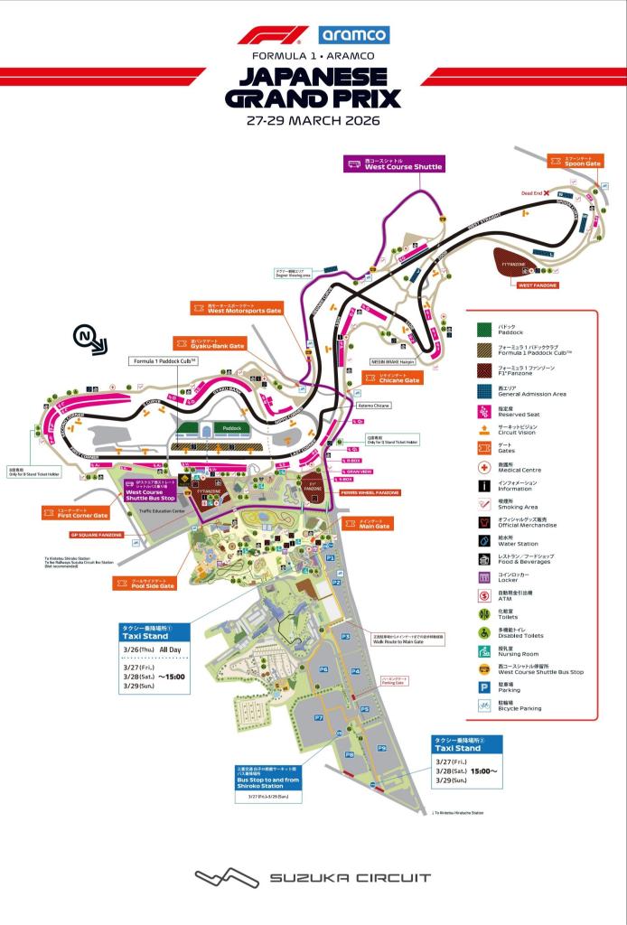 各位期待已久的 2026 日本 F1 大獎賽即將到來,為了幫助前去觀賽的朋友們能更快掌握賽道內部動線、各入口處開放時間、C 區應援席兌換產品、各式各樣的周邊商品…等內容,在此整理一篇文章給大家參考,內容請依照鈴鹿賽道官方所公佈的為主,如有臨時變更將不會另外通知,內容有疏漏的話還請多包涵。
