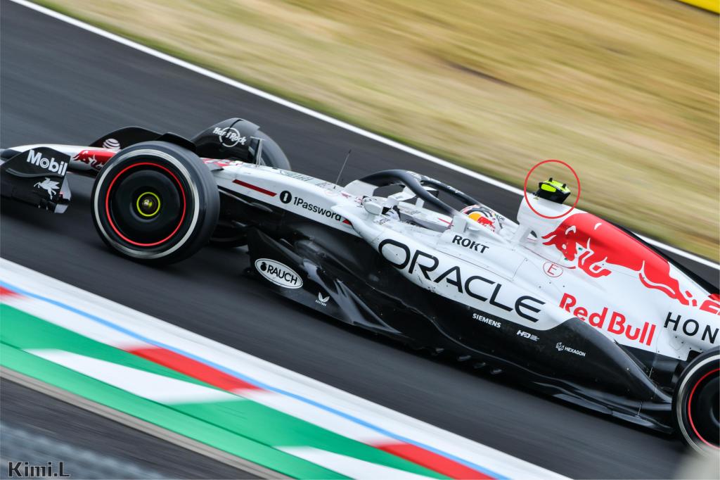 然而在比賽的過程中,同一支隊伍的兩名車手可能在賽道上的不同位置,雖然賽車上會印有車手的專屬號碼,但在賽場上其實不如轉播那樣看得仔細,一時之間要辨認是哪位車手可說是有相當難度,在這裡告訴各位剛加入 F1 領域的新朋友們一個小訣竅,「辨識賽車上 T-cam 的顏色」。T-cam 是位於車手頭頂進氣口上方的攝影機(下圖紅圈處),顏色僅有黑或黃兩種顏色,黑色通常會給車隊裡較資深或一號車手使用。