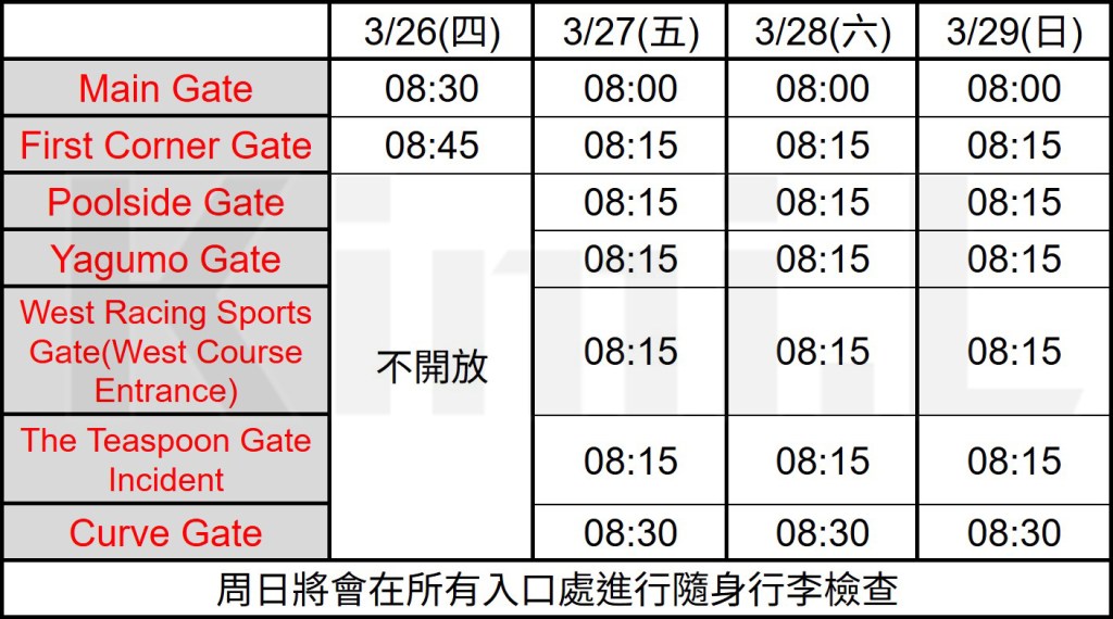 另外,周日在所有的入口處將進行隨身行李的安檢,像是後背包、手提袋…等,往年只是形式上的檢查,工作人員大概看個 3 秒左右就會放行,請不要過於擔心,但也請不要攜帶任何危險物品。