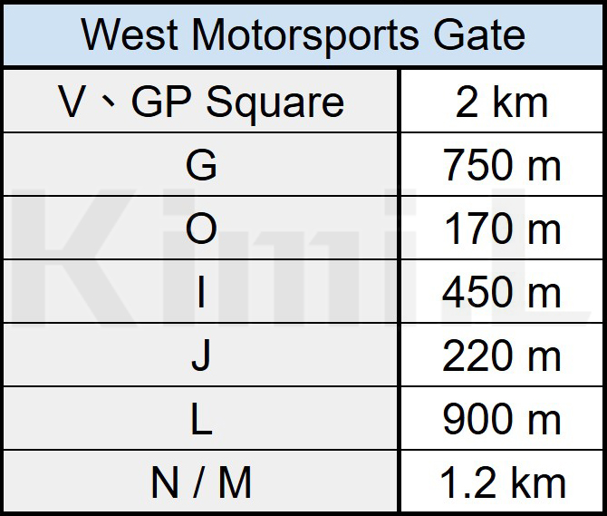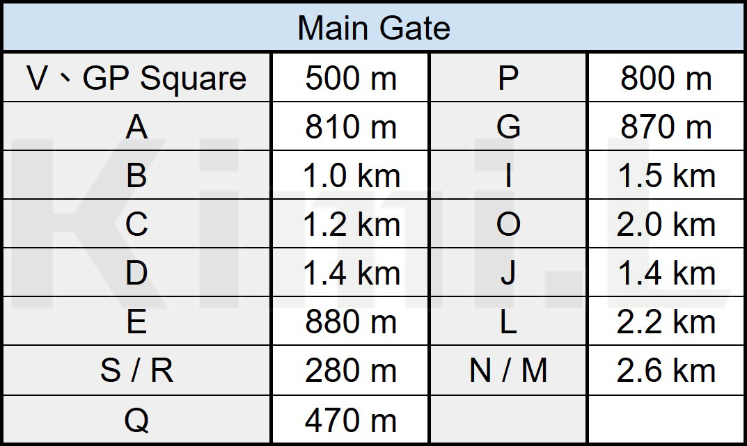 本次鈴鹿賽道整理了各入口與座位席的相對距離,可以預估自己所需的移動時間。