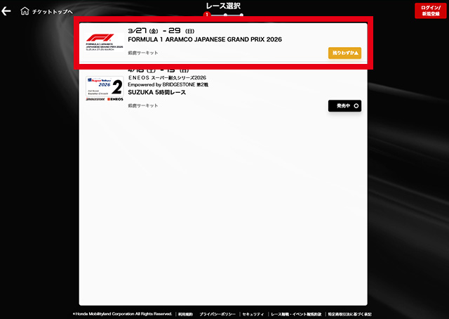 1. 登入 MobilityStation 官方網站,選擇 SUZUKA 賽道售票系統。