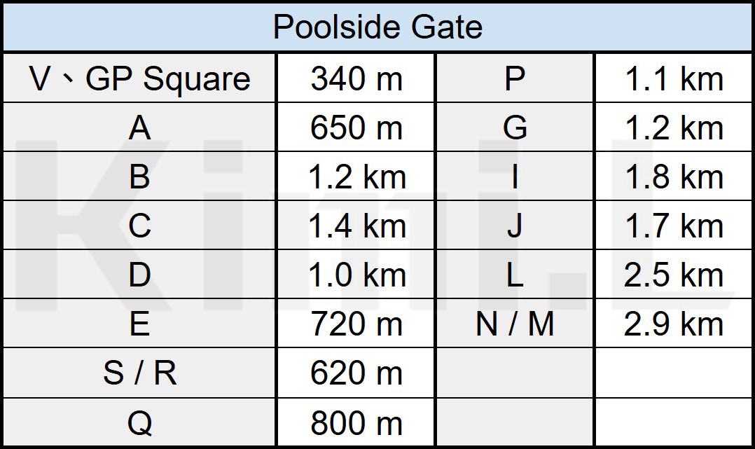 賽道入口 – 大部分觀眾會從 Main Gate 與 First Corner Gate 入場,請留意動線。